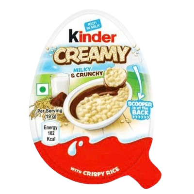 Entdecke den Spaß und Geschmack von KINDER Creamy Milky & Crunchy! Mit der perfekten Kombination aus zarter Milchcreme und knusprigen Keksstücken bietet diese kleine Leckerei ein Erlebnis für alle deine Sinne!